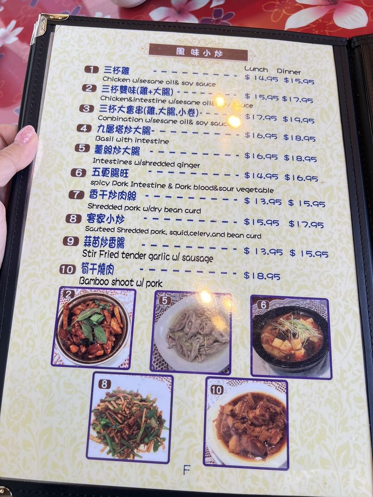 Combination of intestine, pork cheek meat, and fried bean curd.